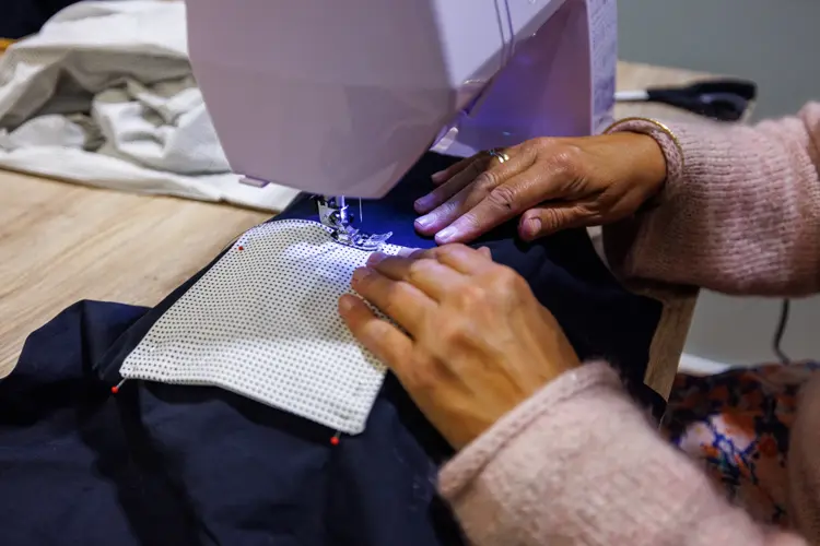 - Sy sammen de to bitene av stoffet på 3 av sidene i rettsøm. Sy deretter sikksakk på de samme sidene slik at handlenettet tåler en god shoppingrunde på Kvadrat.
