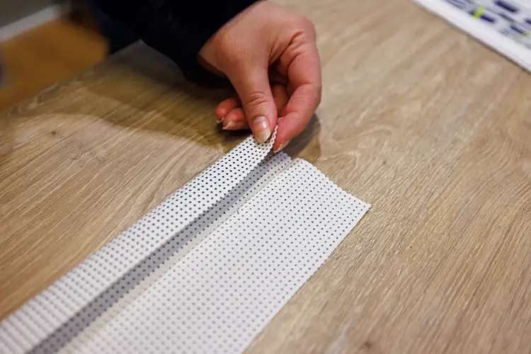 - Klipp ut to biter av stoffet i målene 40x50 cm. Stryk stoffet for å fjerne rynker.