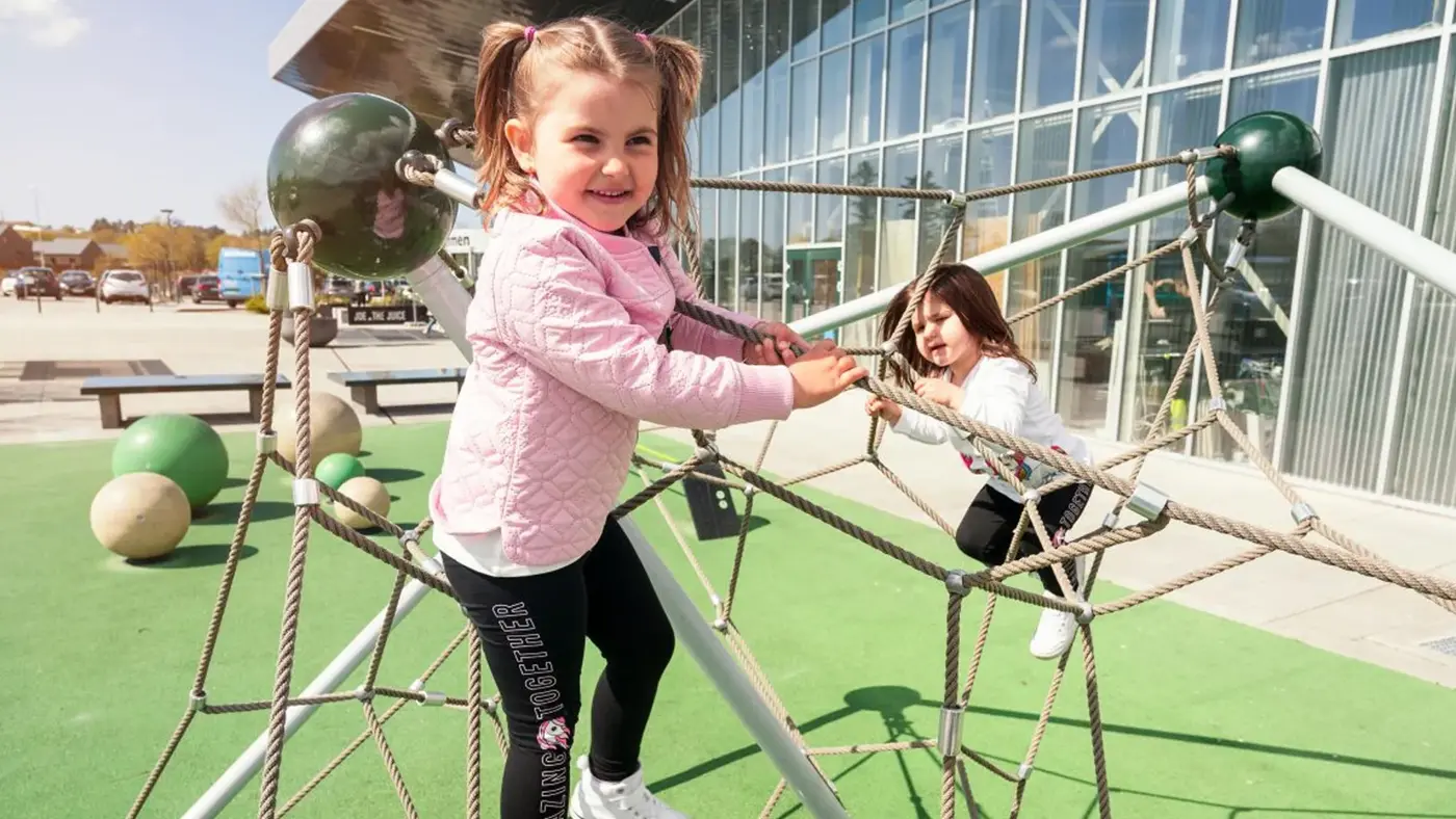 Du finner en morsom balansepark for barn i 3.etasje sør, og en større utendørs lekeplass like utenfor hovedinngang C. De store barna (voksne) har også lov å delta i leken!
