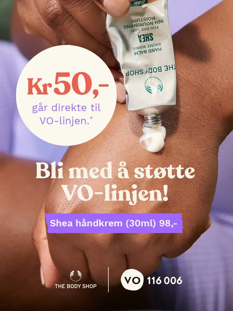 Vi er stolte av vårt nye og viktige samarbeid med VO-linjen, sier Cecilie Sandbu, markedssjef i The Body Shop. Målet er å utgjøre en forskjell for volds- og overgrepsutsatte ved å sette fokus på og synliggjøre hjelpetilbudene som finnes.