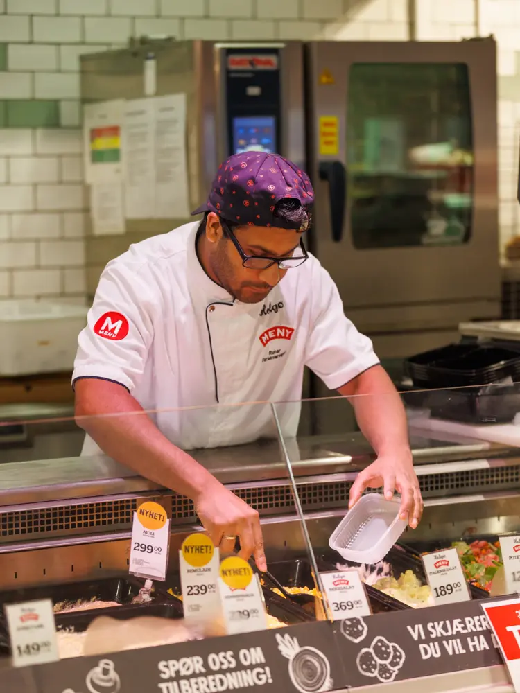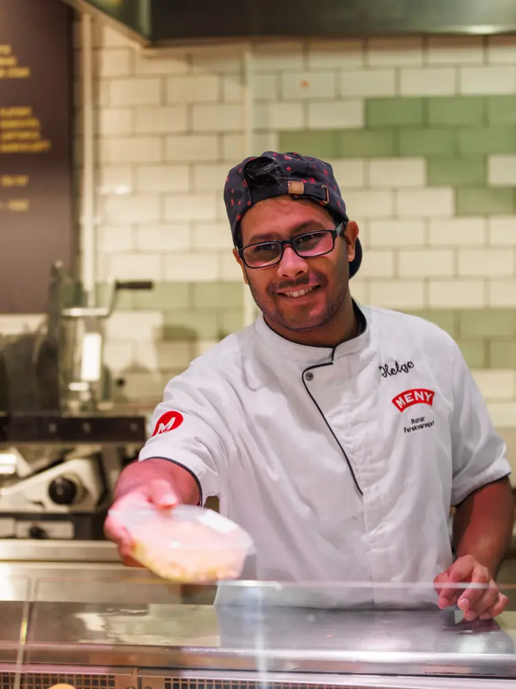 Med et stort smil om munnen forteller han engasjert om hans store lidenskap – nemlig mat! Runar Fyljesvoll er utdannet kokk og har tidligere kokkelert på alt fra sykehjem, til militærleirer og restauranter. Han har også drevet egen restaurant, før han begynte i jobben som ferskvaresjef hos Helgø Meny på Kvadrat i januar.