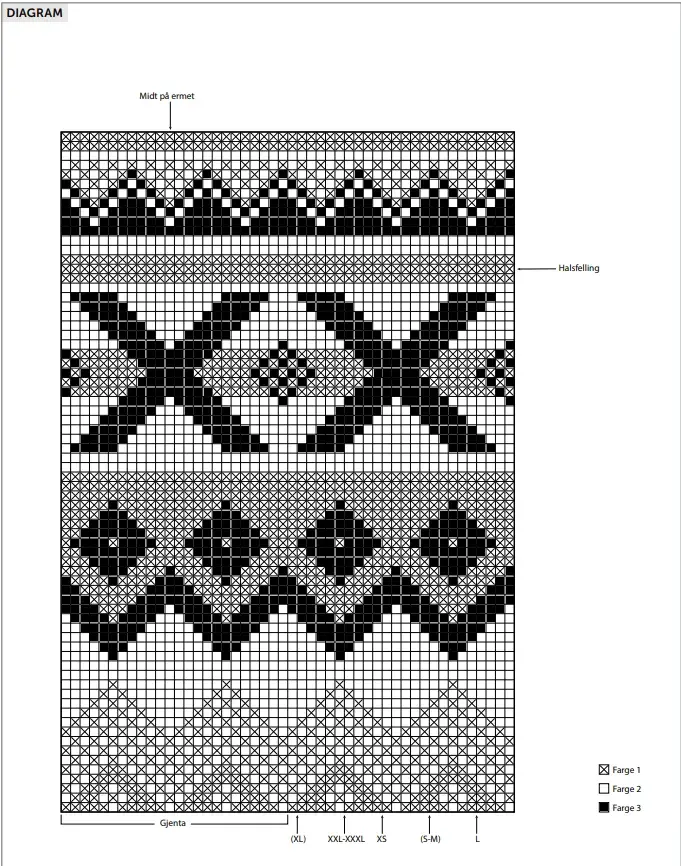 NB! Merke-m inngår ikke i diagrammet og strikkes med den